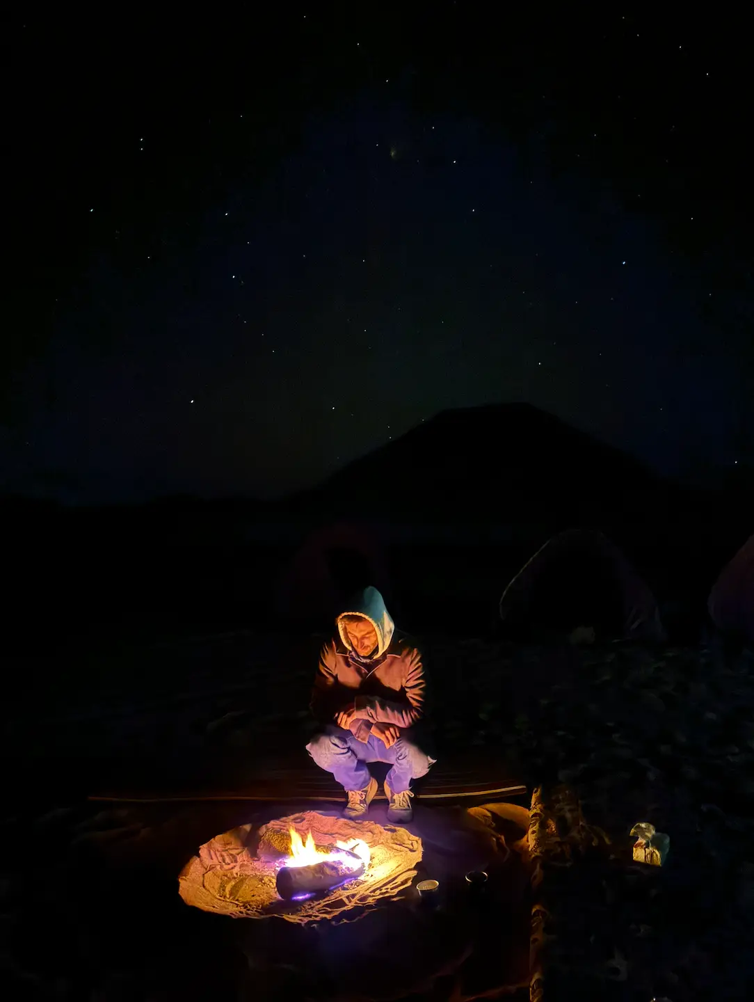 Un vent glacial se levait en début de journée et nous enveloppait pendant des heures. Il fallait attendre la nuit pour qu’enfin il nous laisse tranquille et qu’on puisse se réchauffer près du feu. Cinq jours sans avoir chaud une seule seconde.