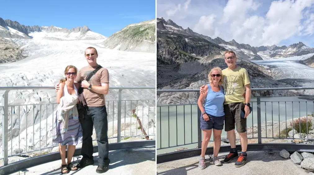 Ce n’est pas l’endroit le plus cher de Suisse, puisqu’il n’y a rien à acheter. Principalement vous brulerez de l’essence. Ce qui est dommage, vu que l’idée est aussi de se rendre compte des méfaits du réchauffement climatique. Mais les paysages valent le détour, surtout si vous pouvez un peu sensibiliser votre oncle réfractaire à ce sujet. Aucun endroit où dormir tout en haut, il faudra redescendre ! J’étais surtout très fier que ma grand mère marche à 2400m au glacier du Rhône.