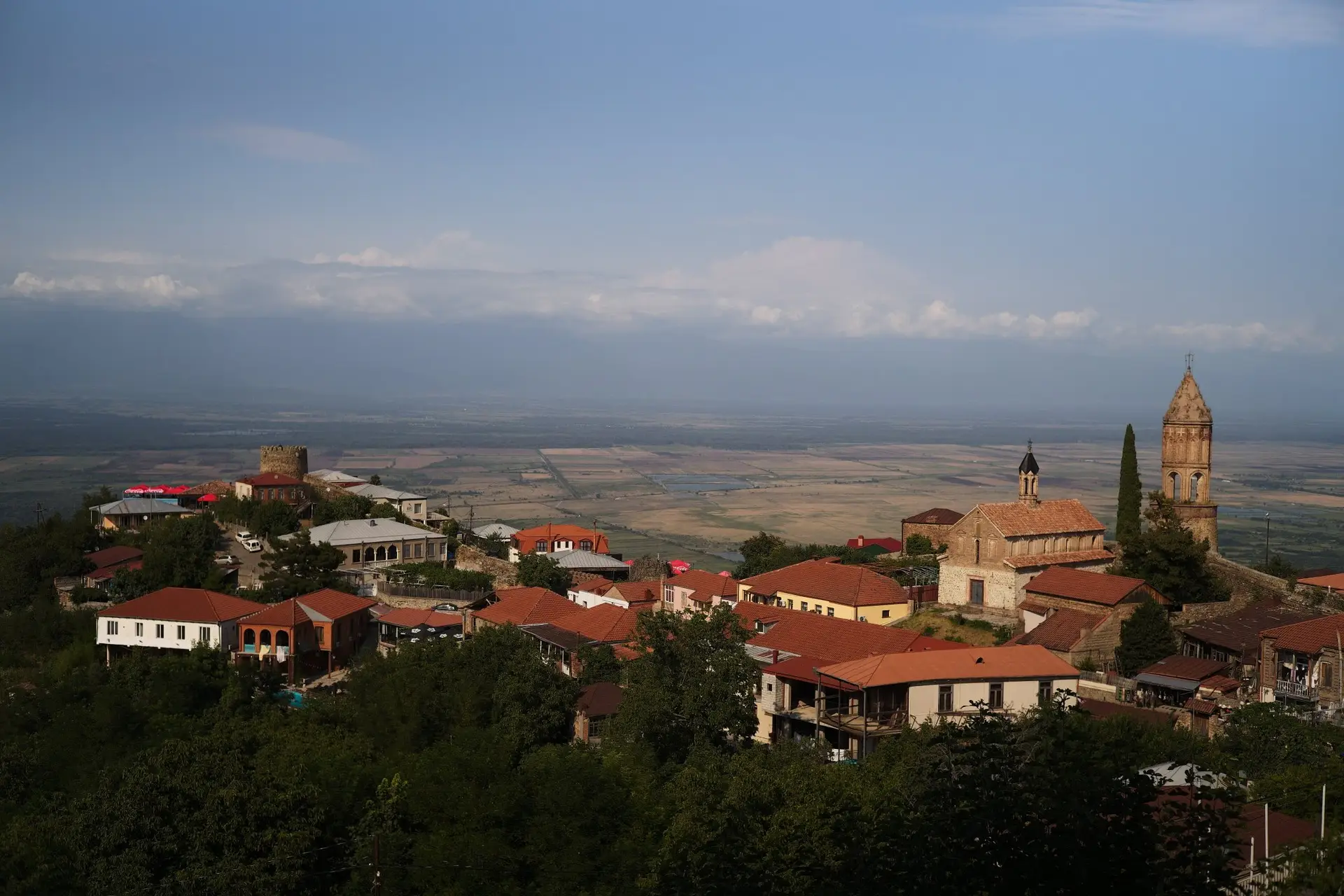 S’il n’y avait qu’un seul endroit où s’arrêter en Kakhétie, ce serait Sighnaghi. Rien que pour la route qui y mène. Ce village en hauteur domine toute la plaine environnante et donne une vue merveilleuse sur les montagnes du Nord. Attention, la ville est très touristique en journée l’été. Il vaut mieux s’y arrêter le soir quand le soleil décline et manger dans l’un de ses restaurants avec vue pour observer le coucher de soleil. J’ai personnellement testé le Castle fortress restaurant, sur les murs de la forteresse de la ville. Juste parfait !